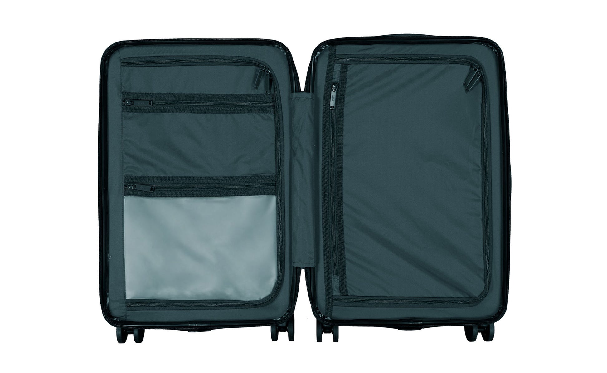 Lightweight, great feel, easy zippers, love compartments, easy wheeling, great size