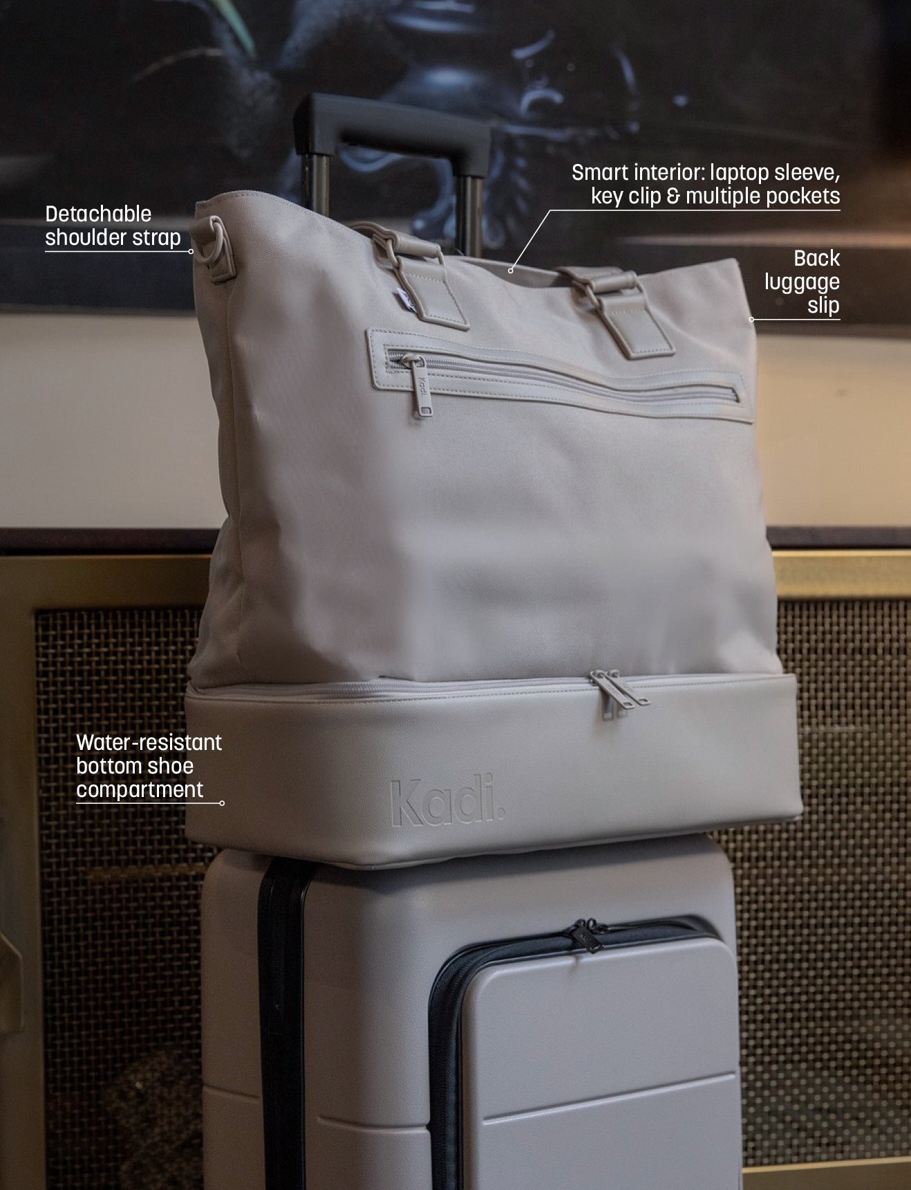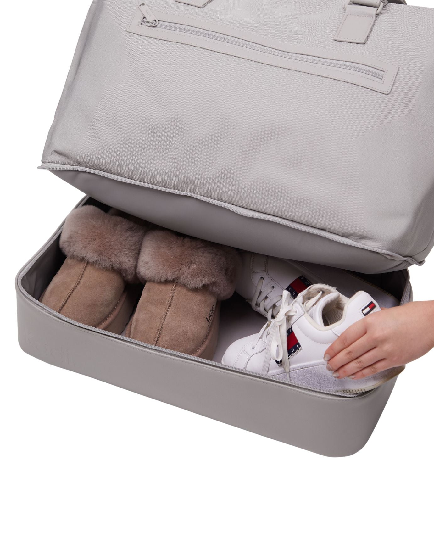 Don’t choose between your favourite belongings; bring them all with Kadi’s Pebble Long Weekender travel bag! Kitted out with extra-roomy compartments, durable handles, and must-have organisational features, our Long Weekender bag is perfect for the stylish explorer who needs a long weekend of wanderlust!